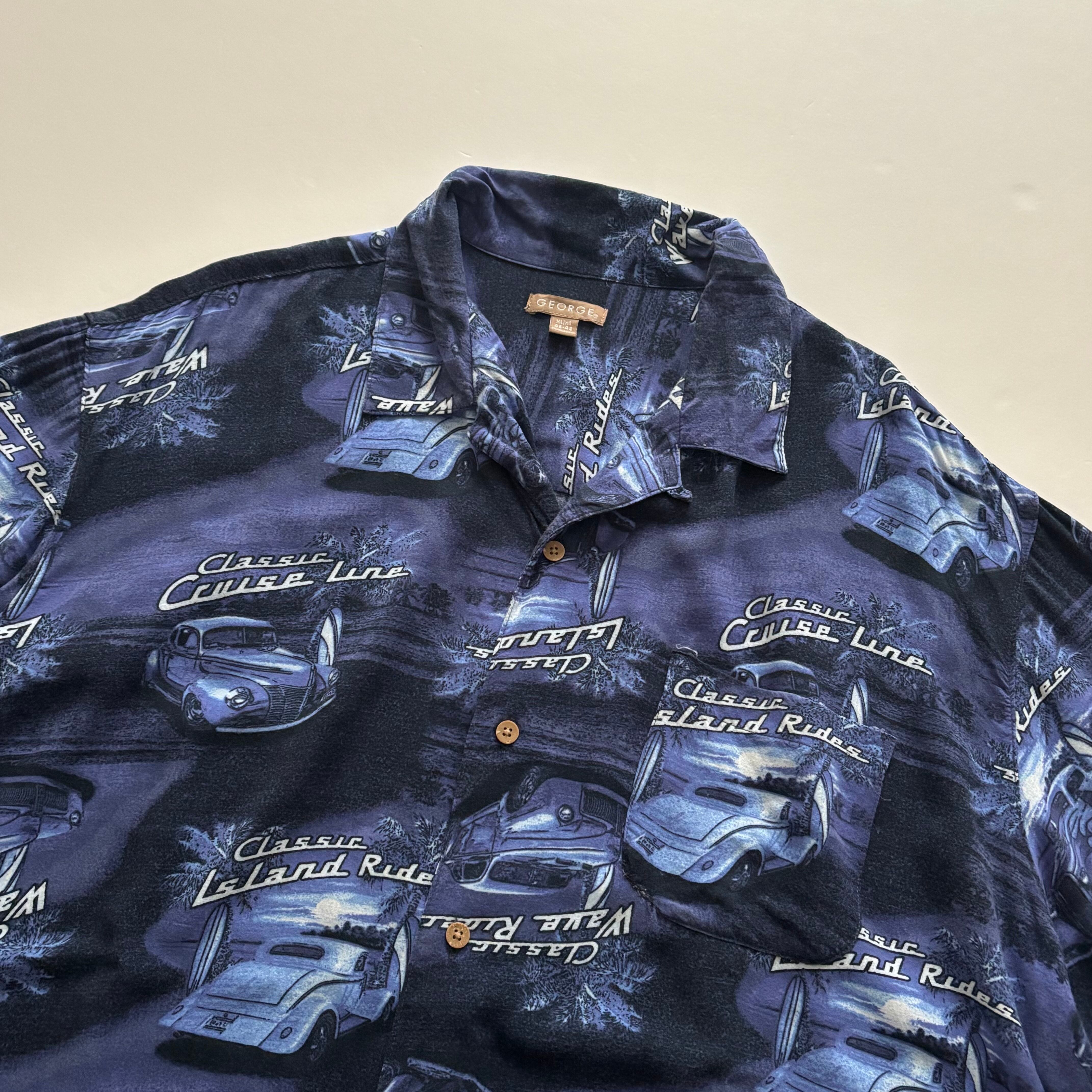 -USED- CLASSIC CAR OPEN COLLAR SHIRTS -NAVY- [XL]
