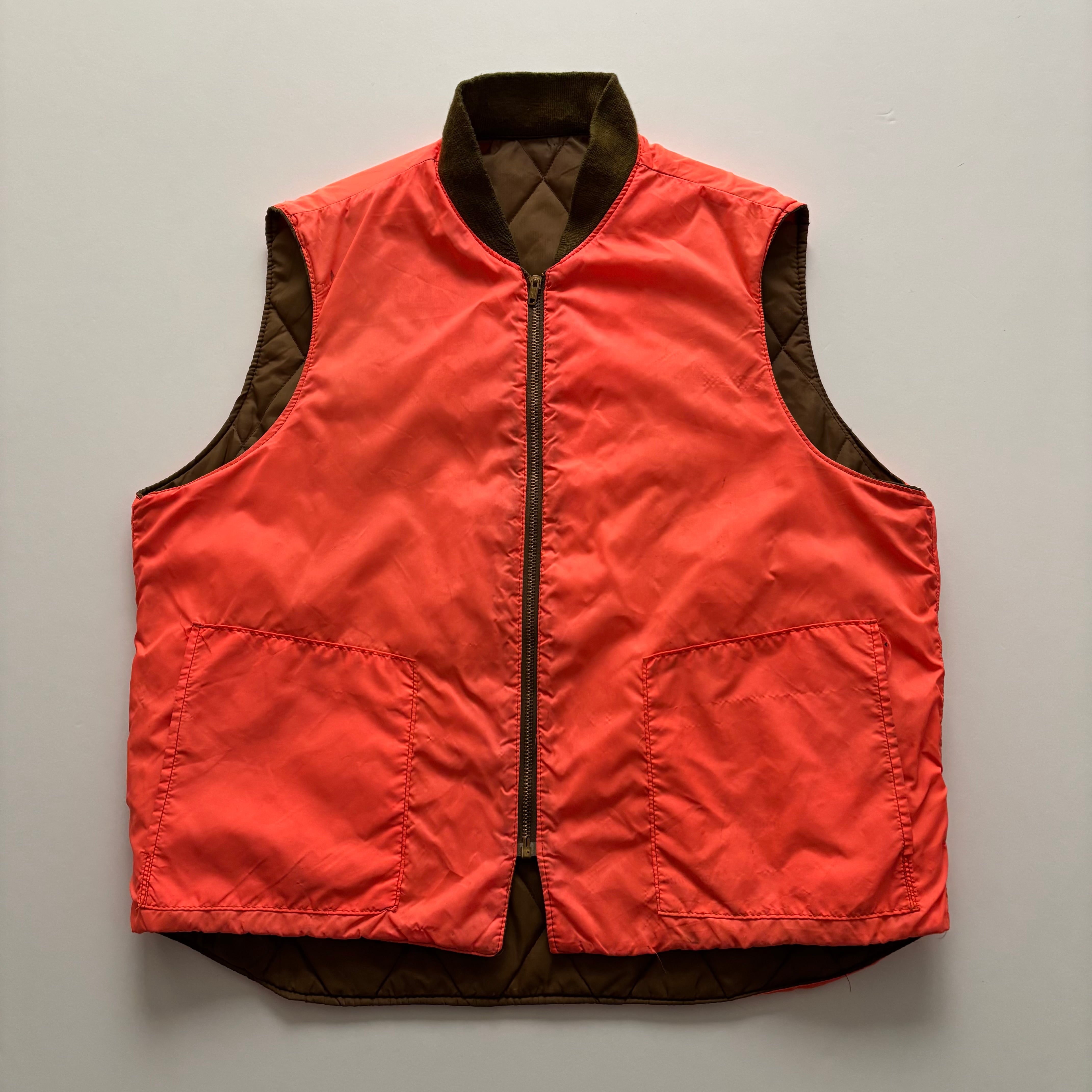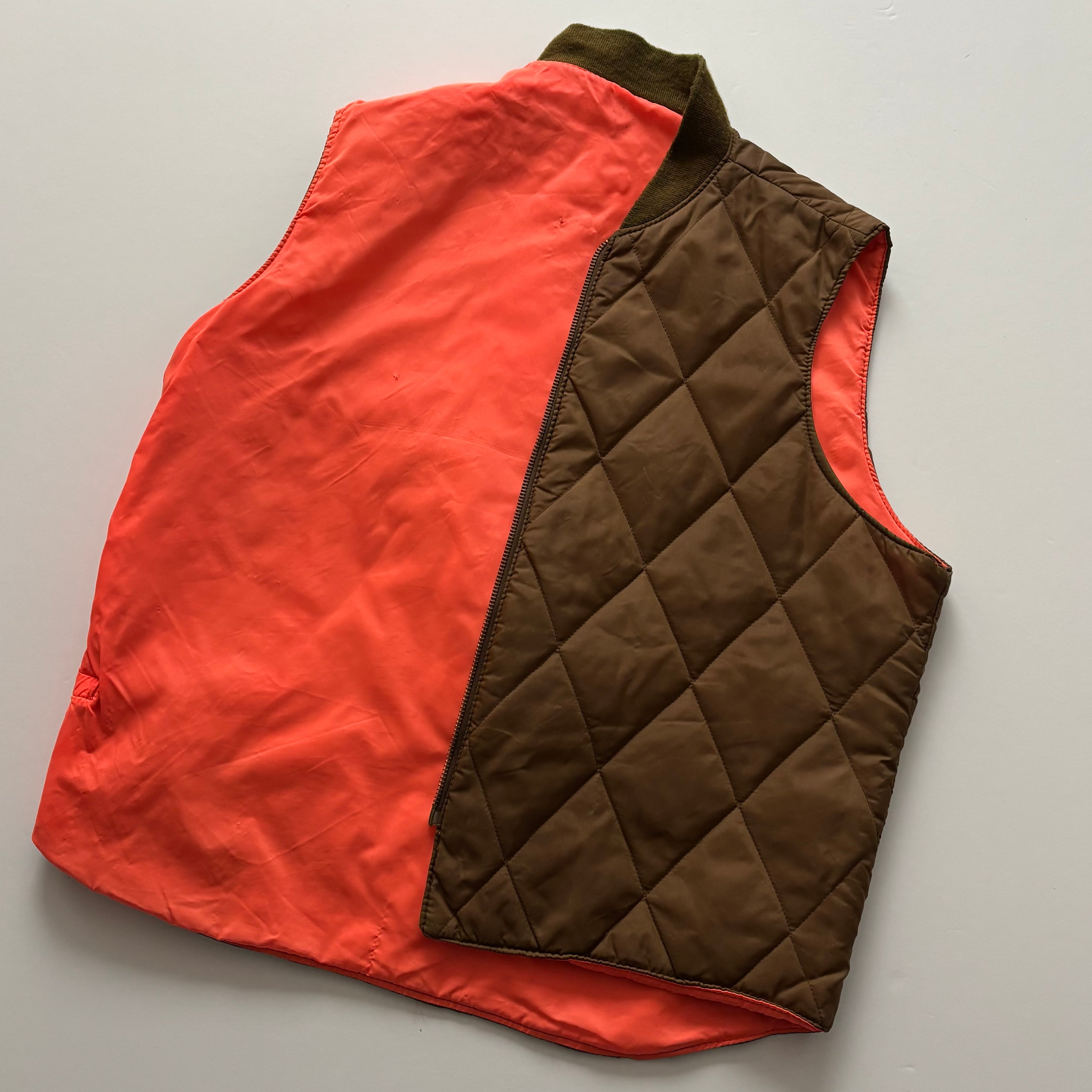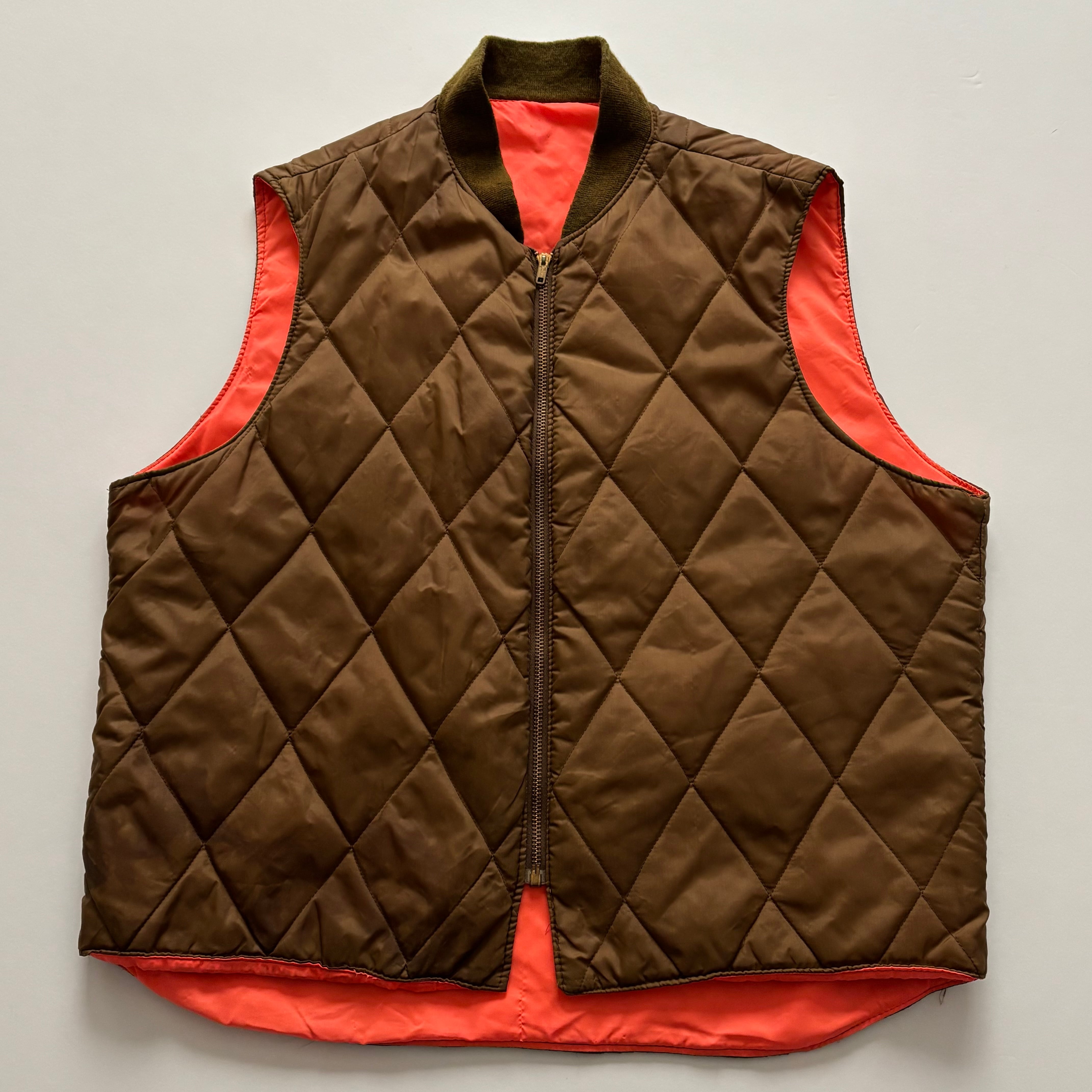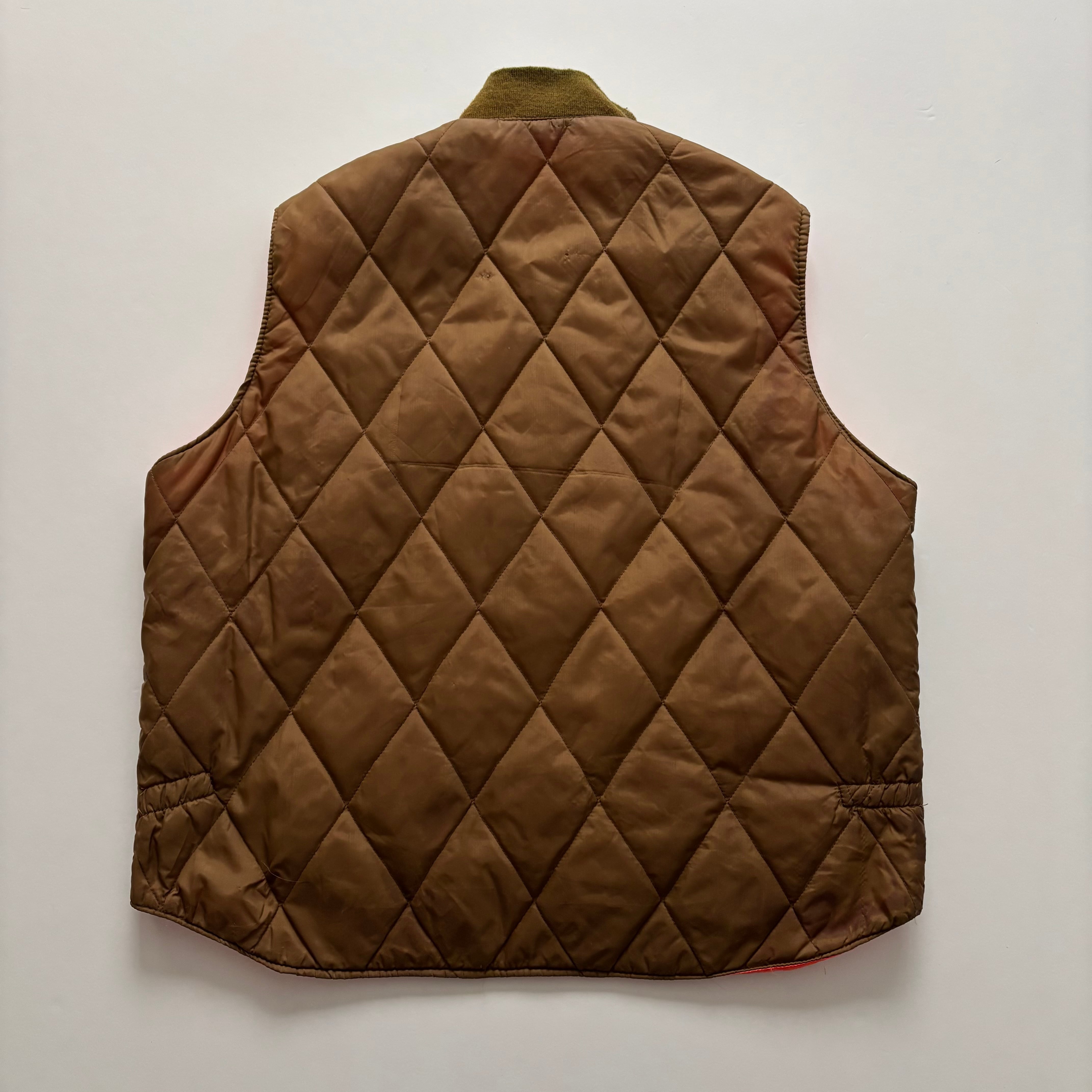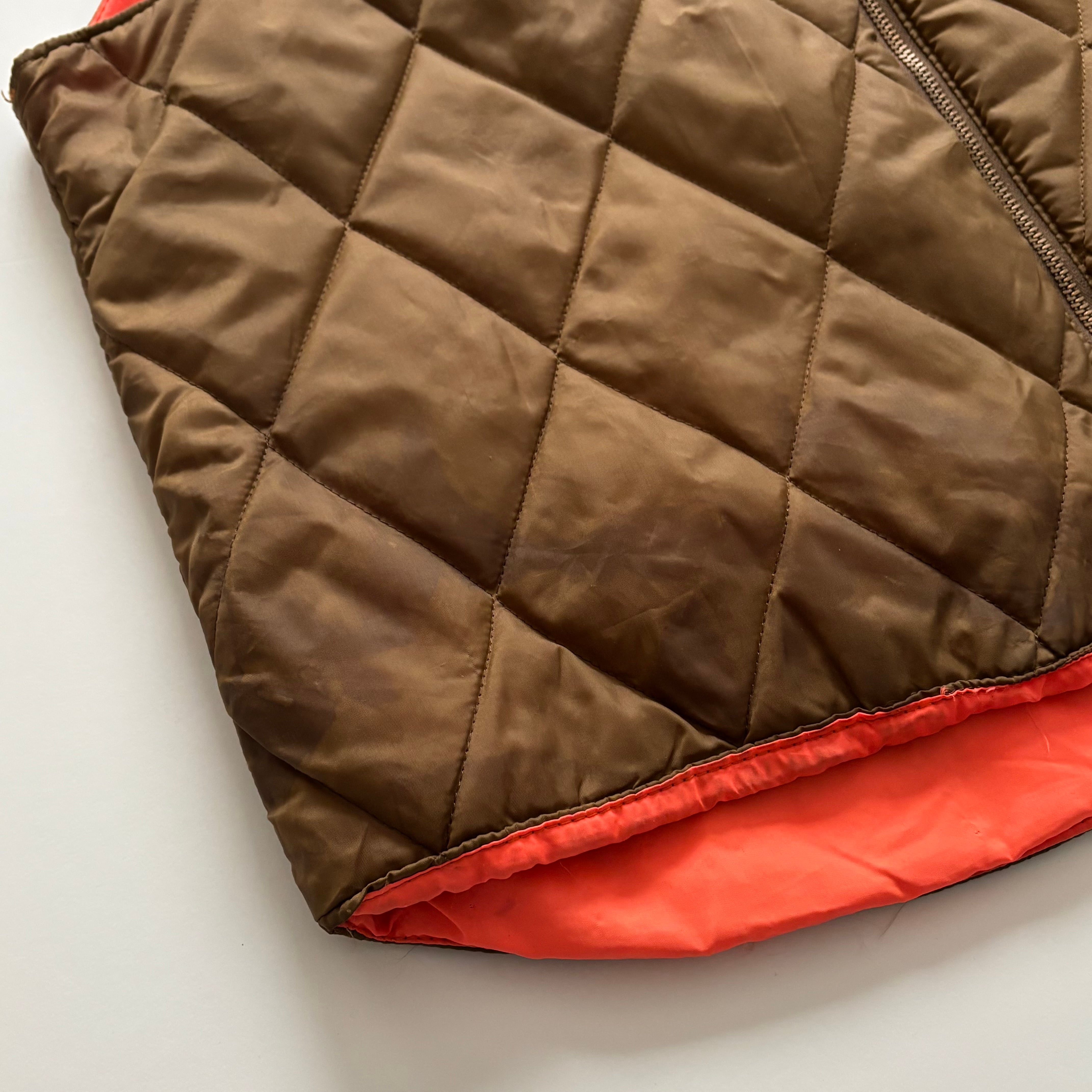 -USED- 1960-70s REVERSIBLE QUILTED VEST -BROWN,ORANGE- [XL]