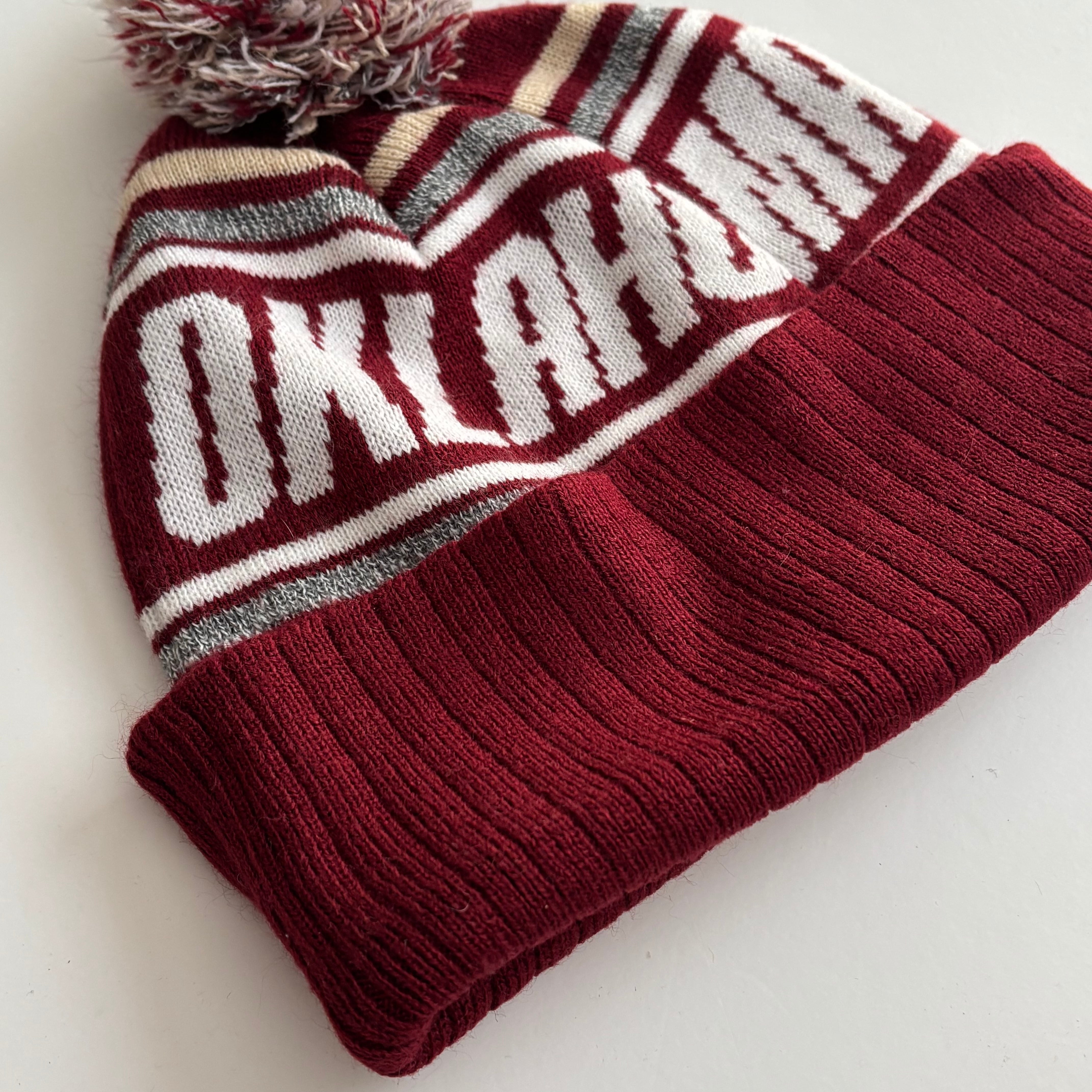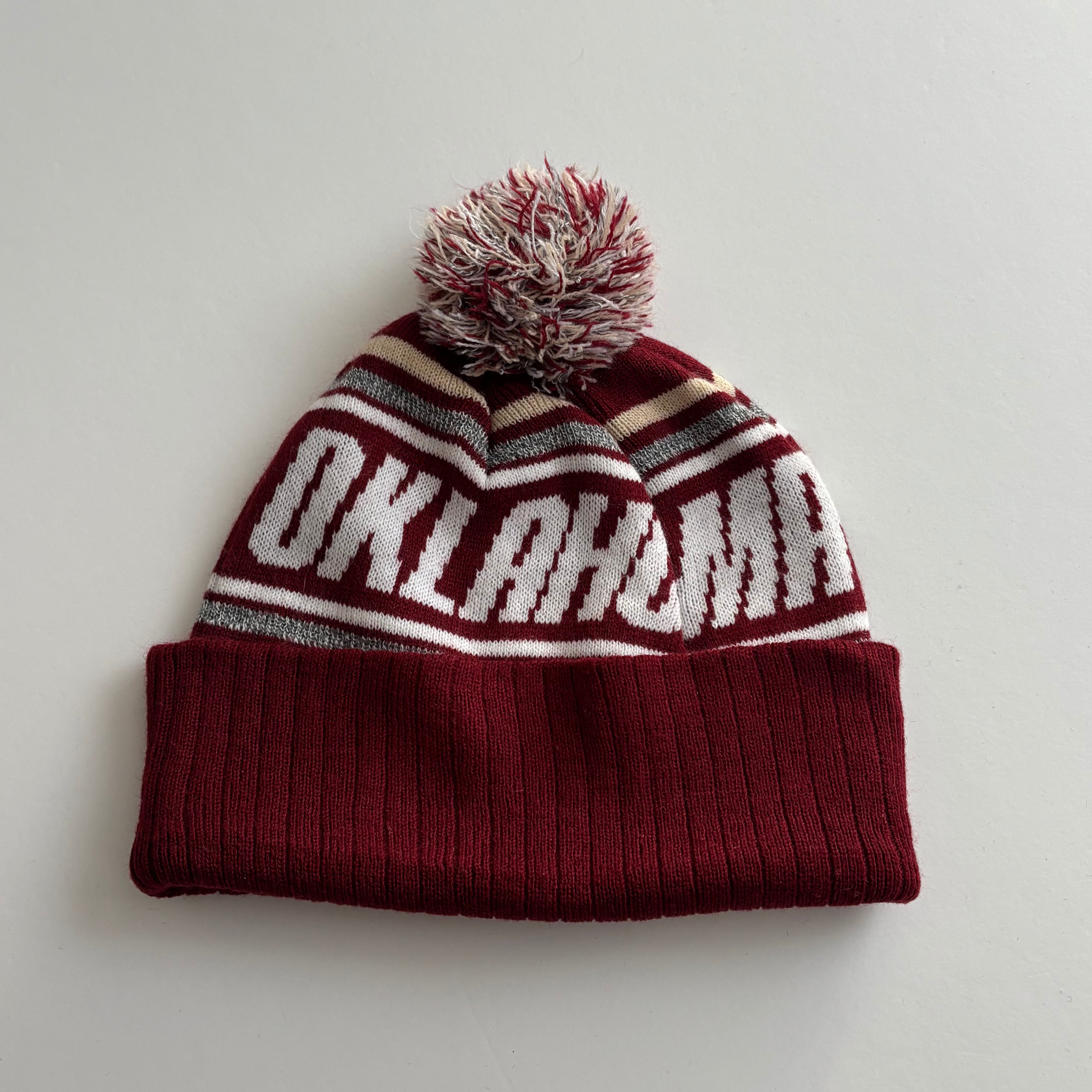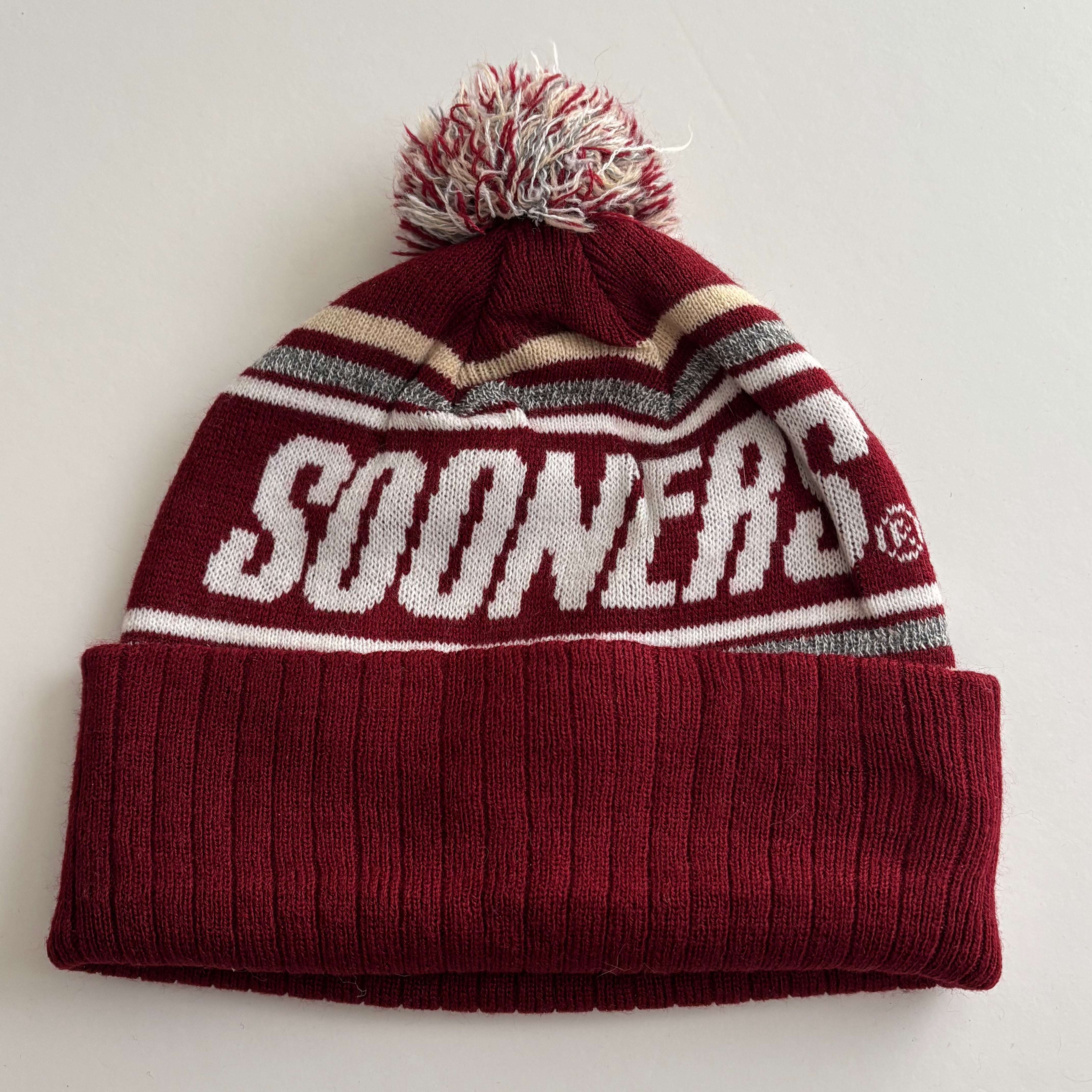 -USED- OKLAHOMA SNOONERS POM POM BEANIE -CRIMSON RED- [ONE SIZE]