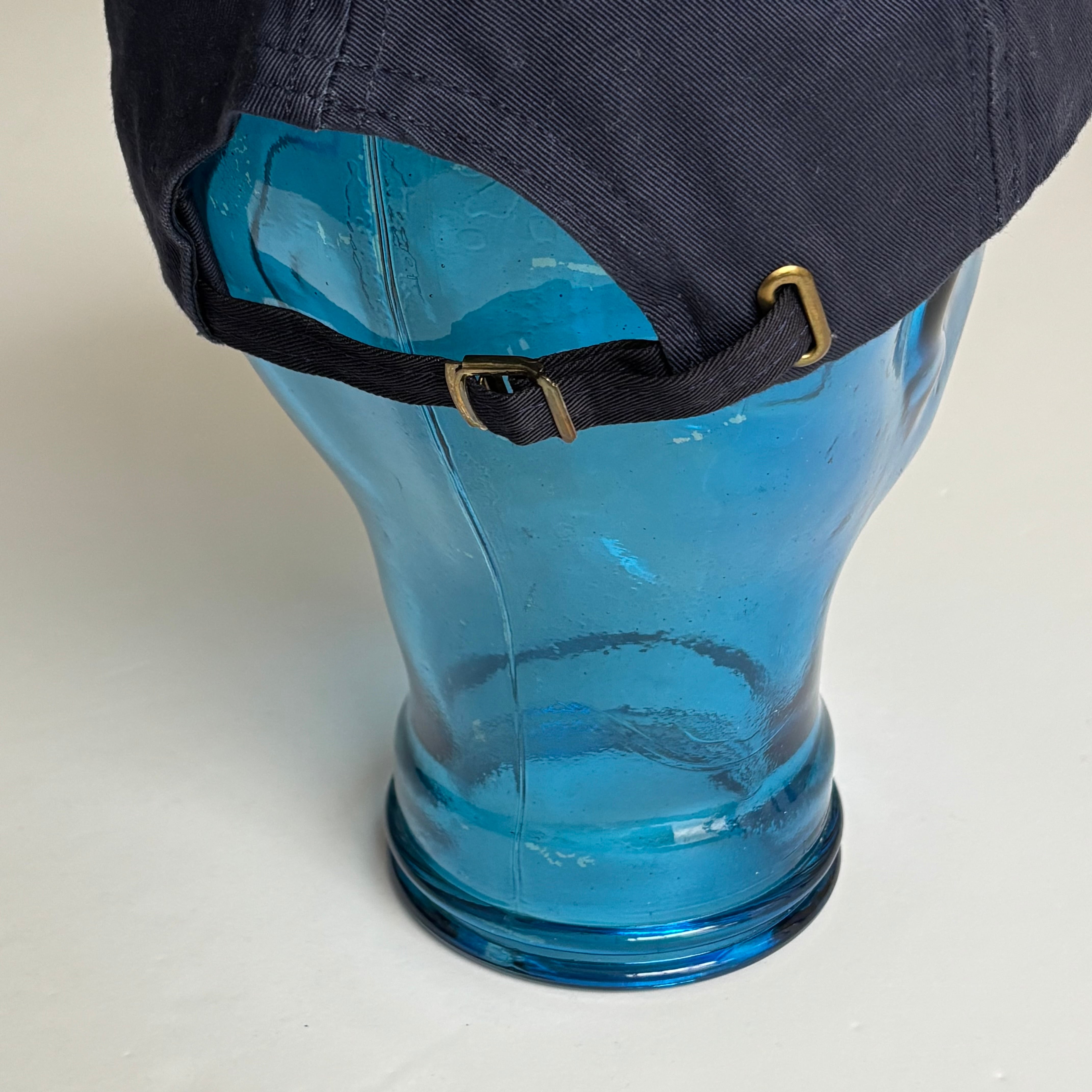 紺色で深緑刺繍のボールキャップ