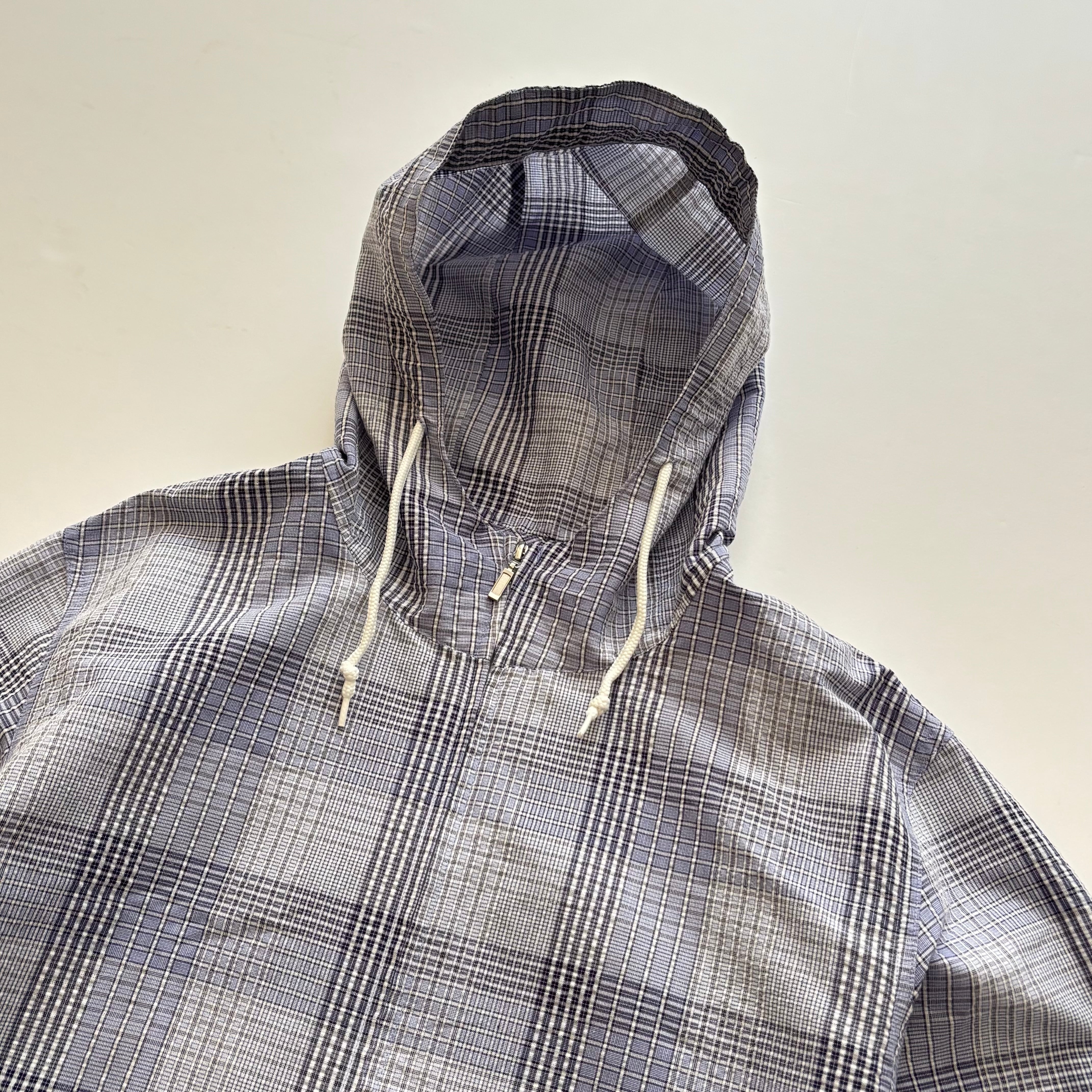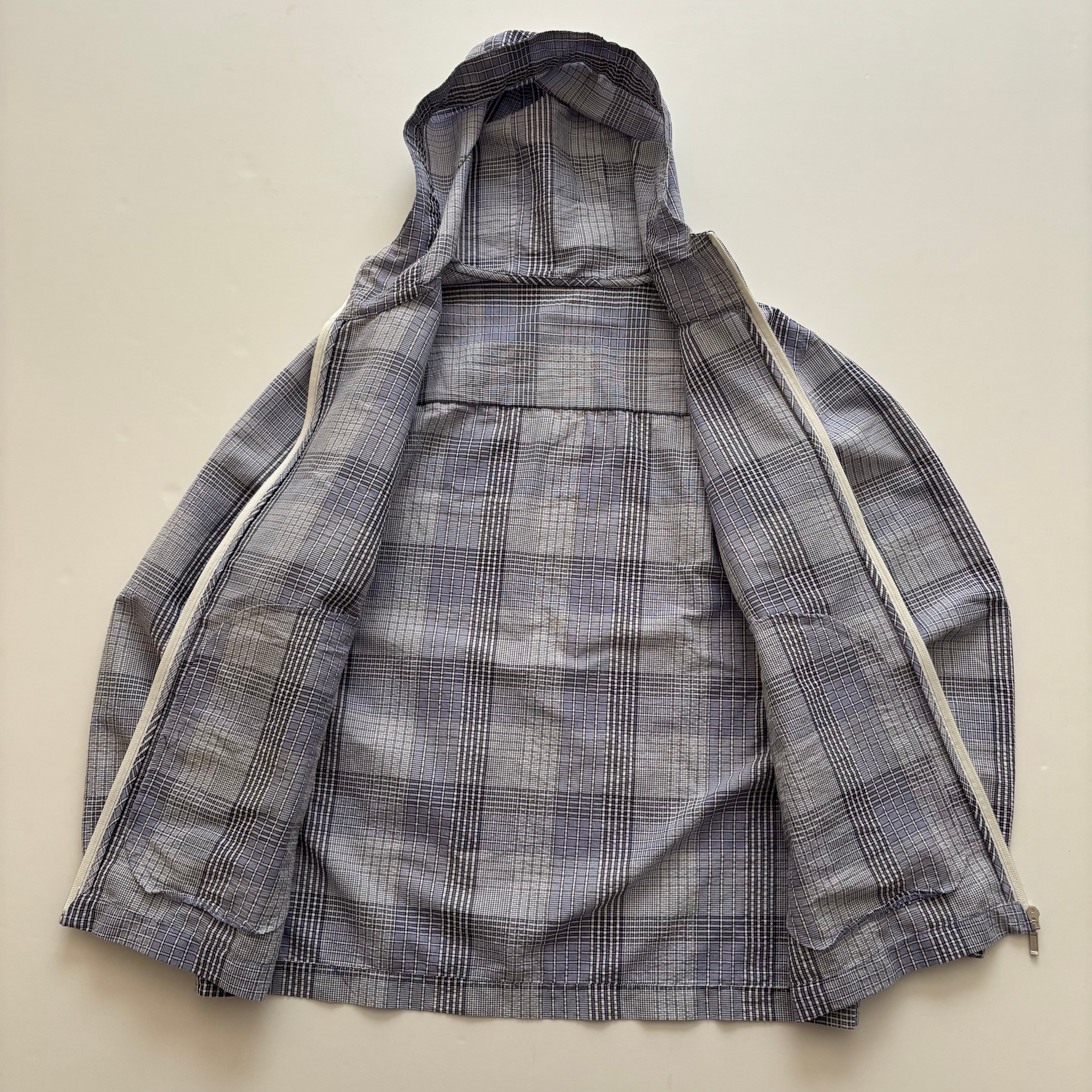 -USED- CHECK HOODED JACKET -LIGHT BLUE- [M相当]
