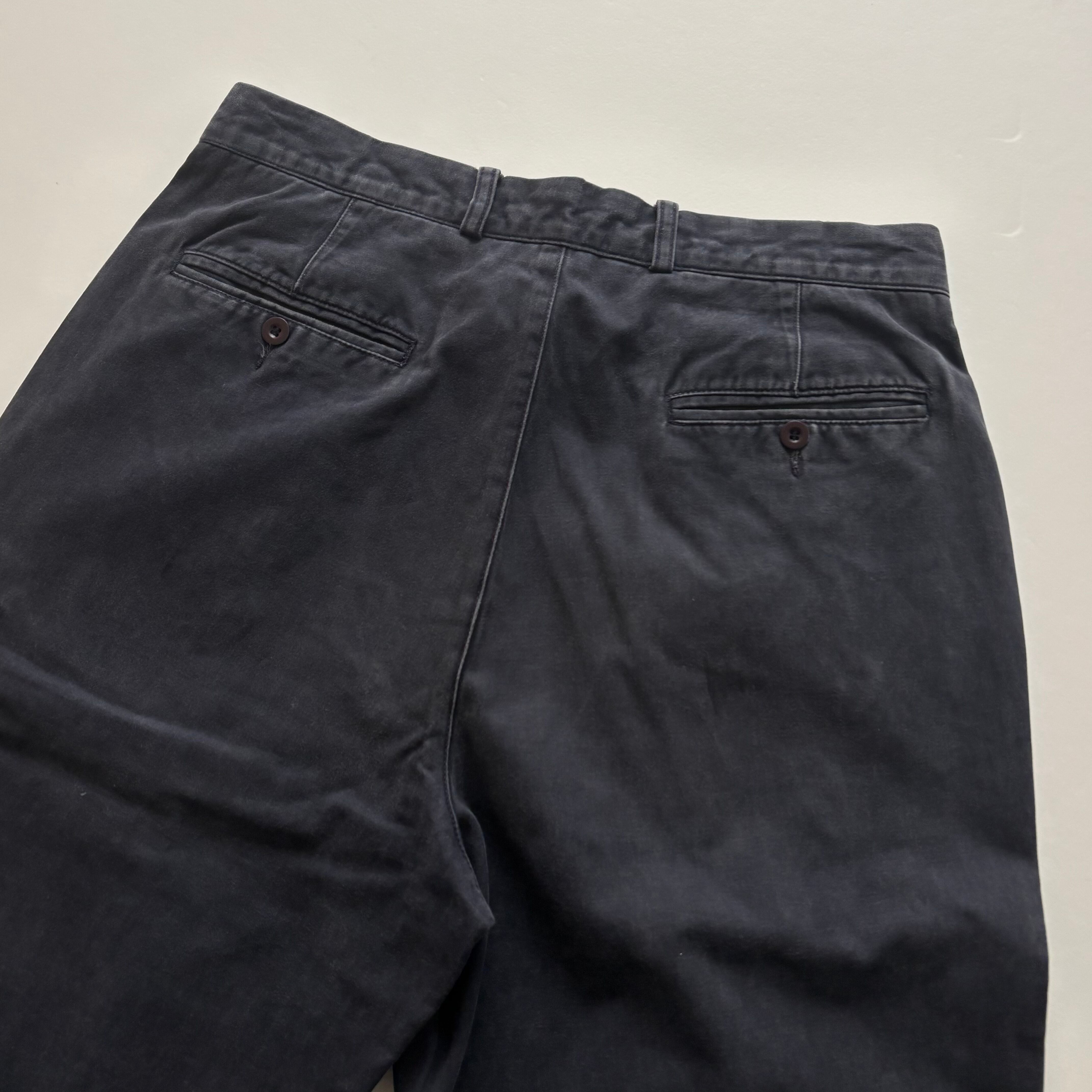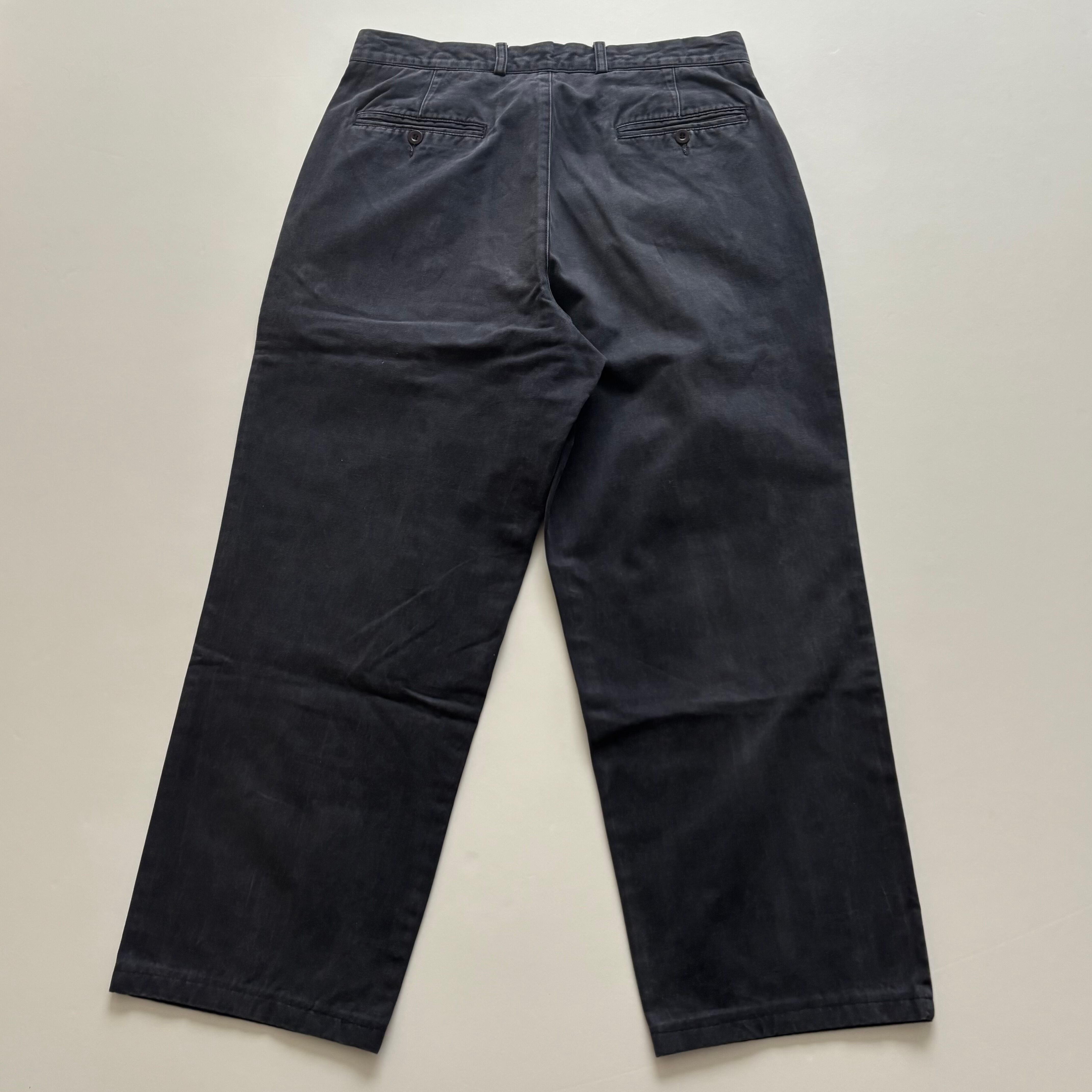 -USED- MADE IN ITALY ARMANI JEANS STONEWASHED TWO TUCK PANTS -NAVY- [W34]